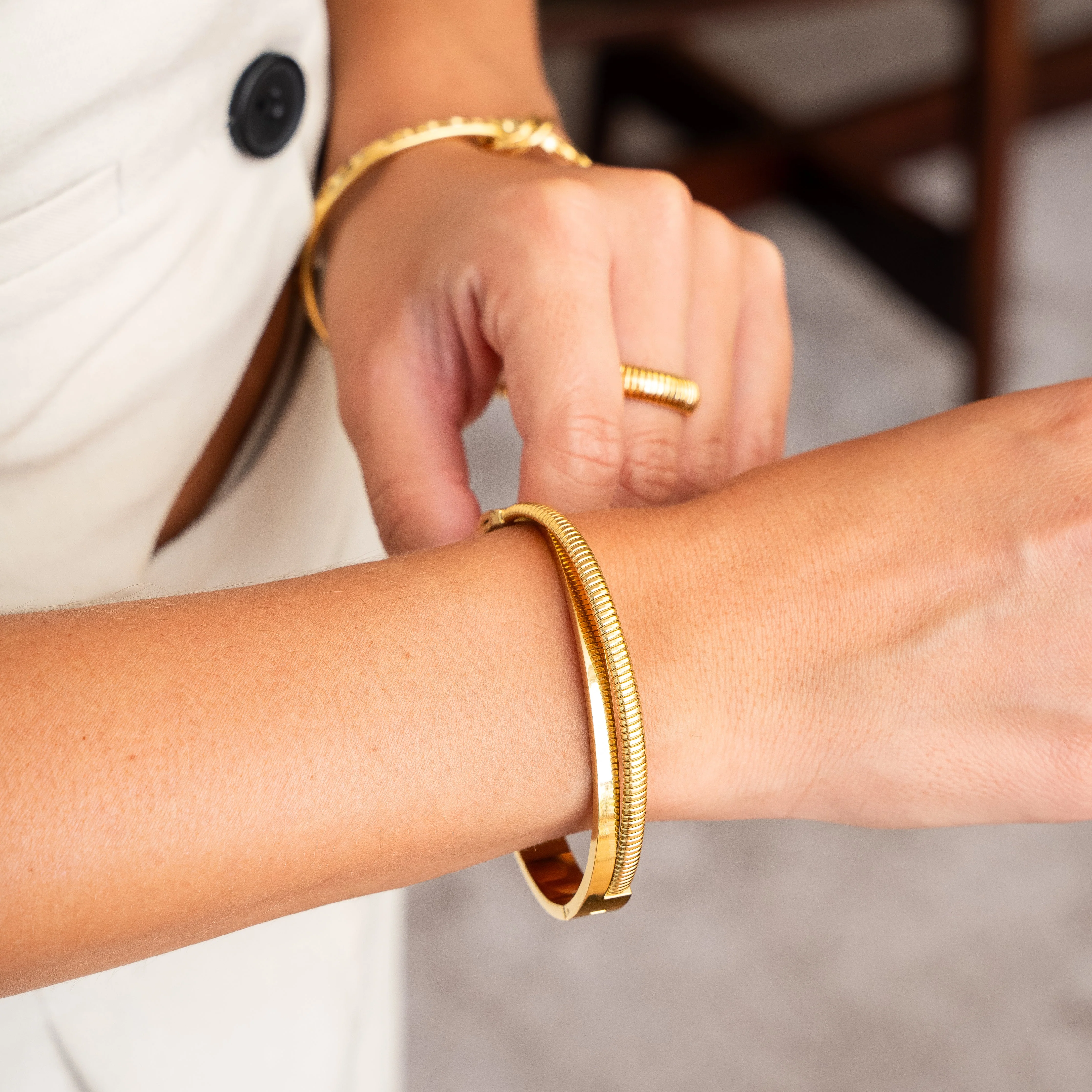 Double Layer Chunky Bangle Gold